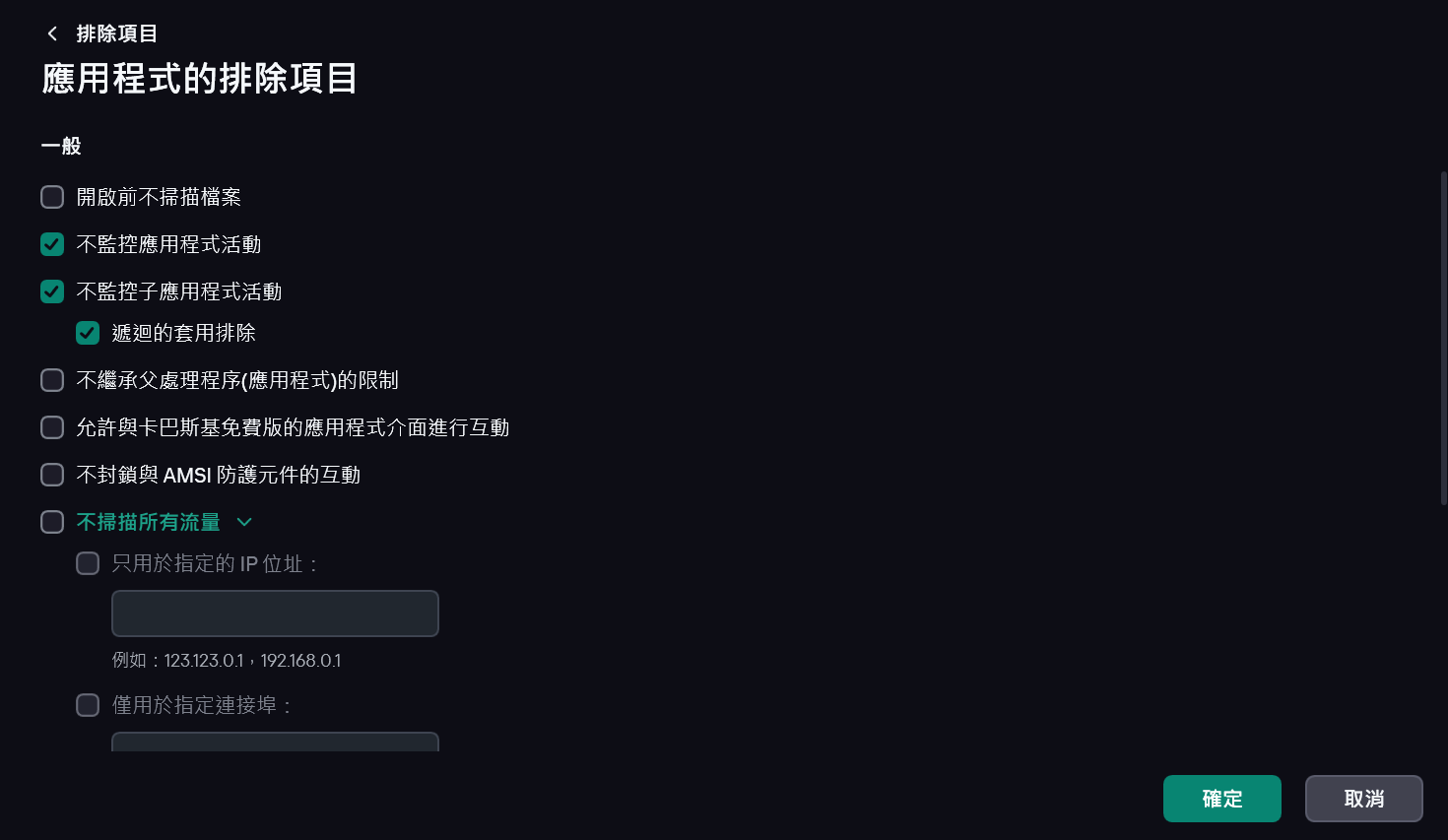 至於其他的選項(例如不要掃描檔案、允許與介面互動等),建議保持關閉。我們只想解決誤判,重點是維持防毒軟體的底線防禦機制,只要最小化允許 Cursor 使用就好,不然到時真的中獎卡巴不幫你掃出來。