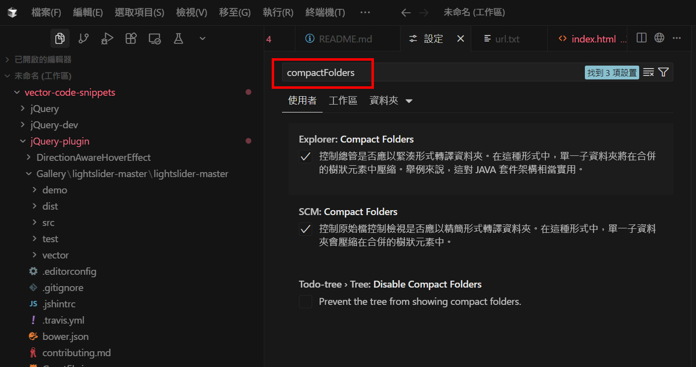 Compact Folders - 將 Explorer: Compact Folders 取消勾選