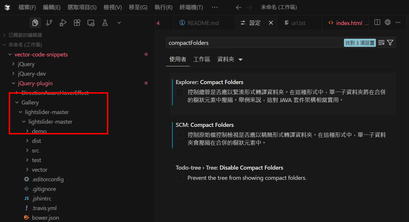 這其實這功能在 VS Code 叫 Compact Folders(壓縮資料夾) 功能:當資料夾一路只有單一子資料夾時,會把路徑合併成一個節點,節省垂直空間,但也常造成瀏覽、拖曳檔案、確認層級時不直覺,常常會拉錯檔案,或檔案放錯層級。